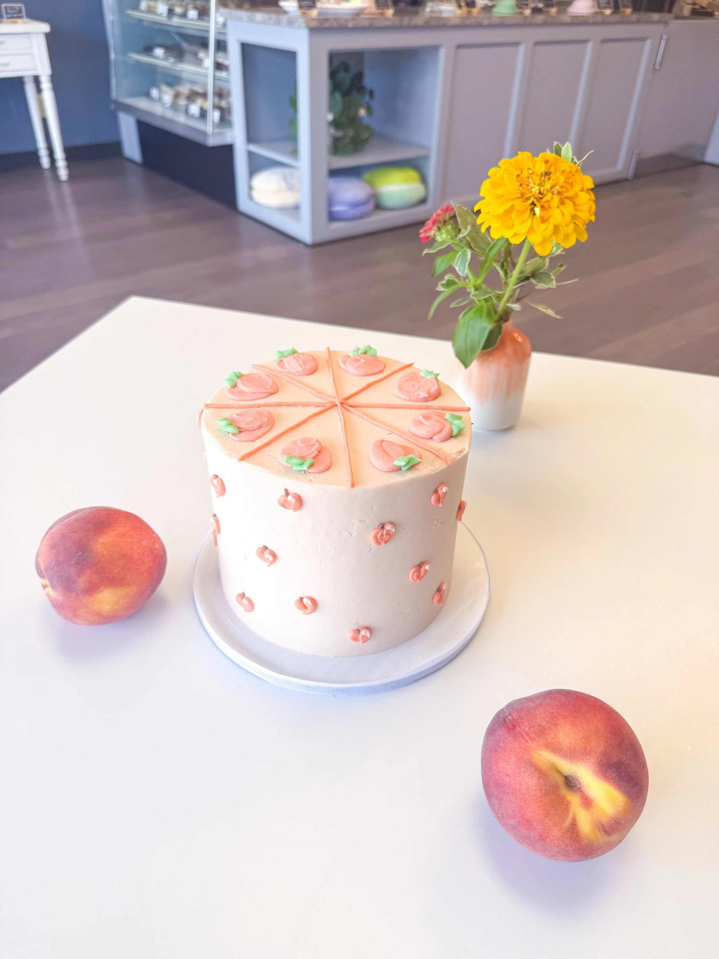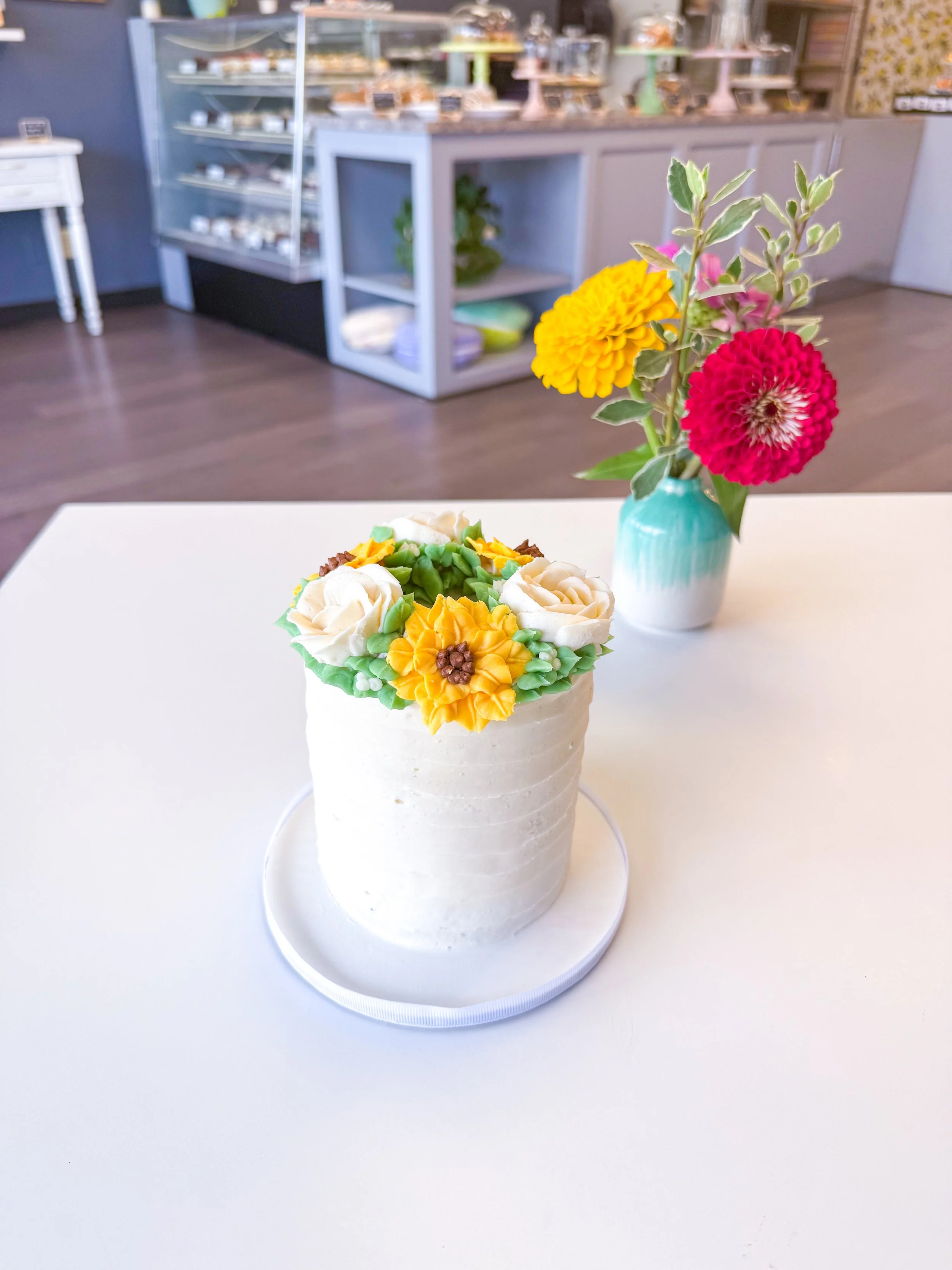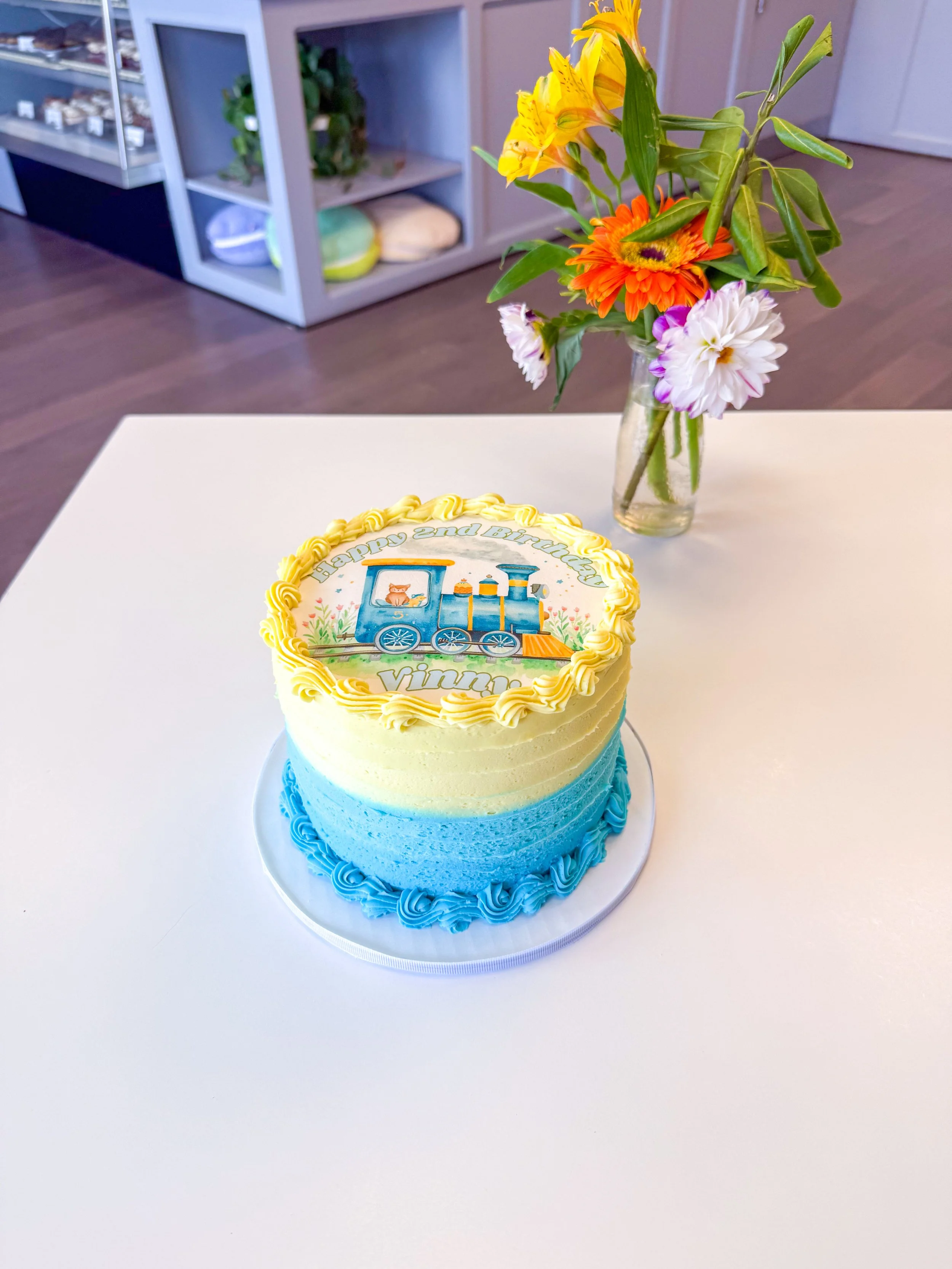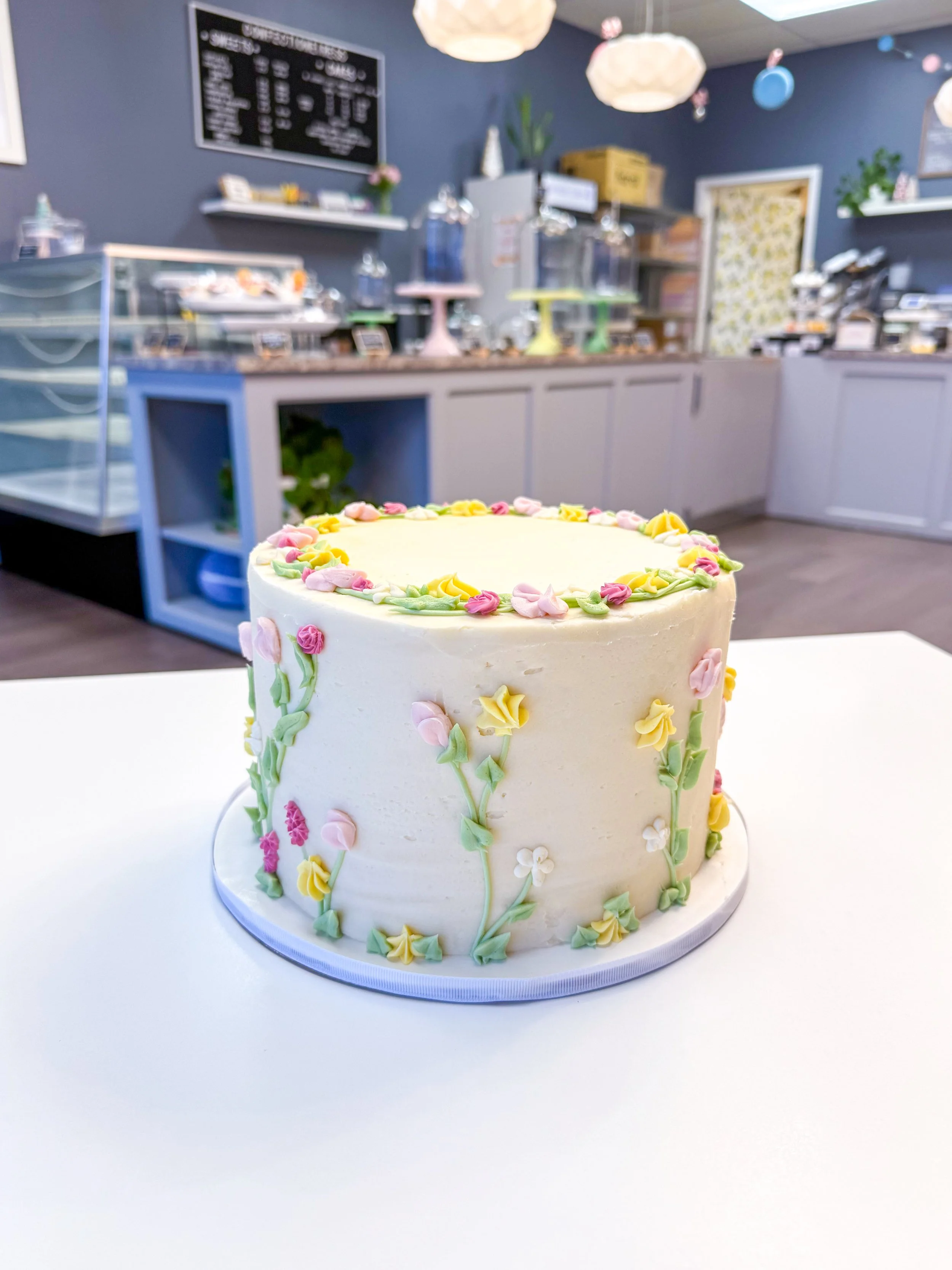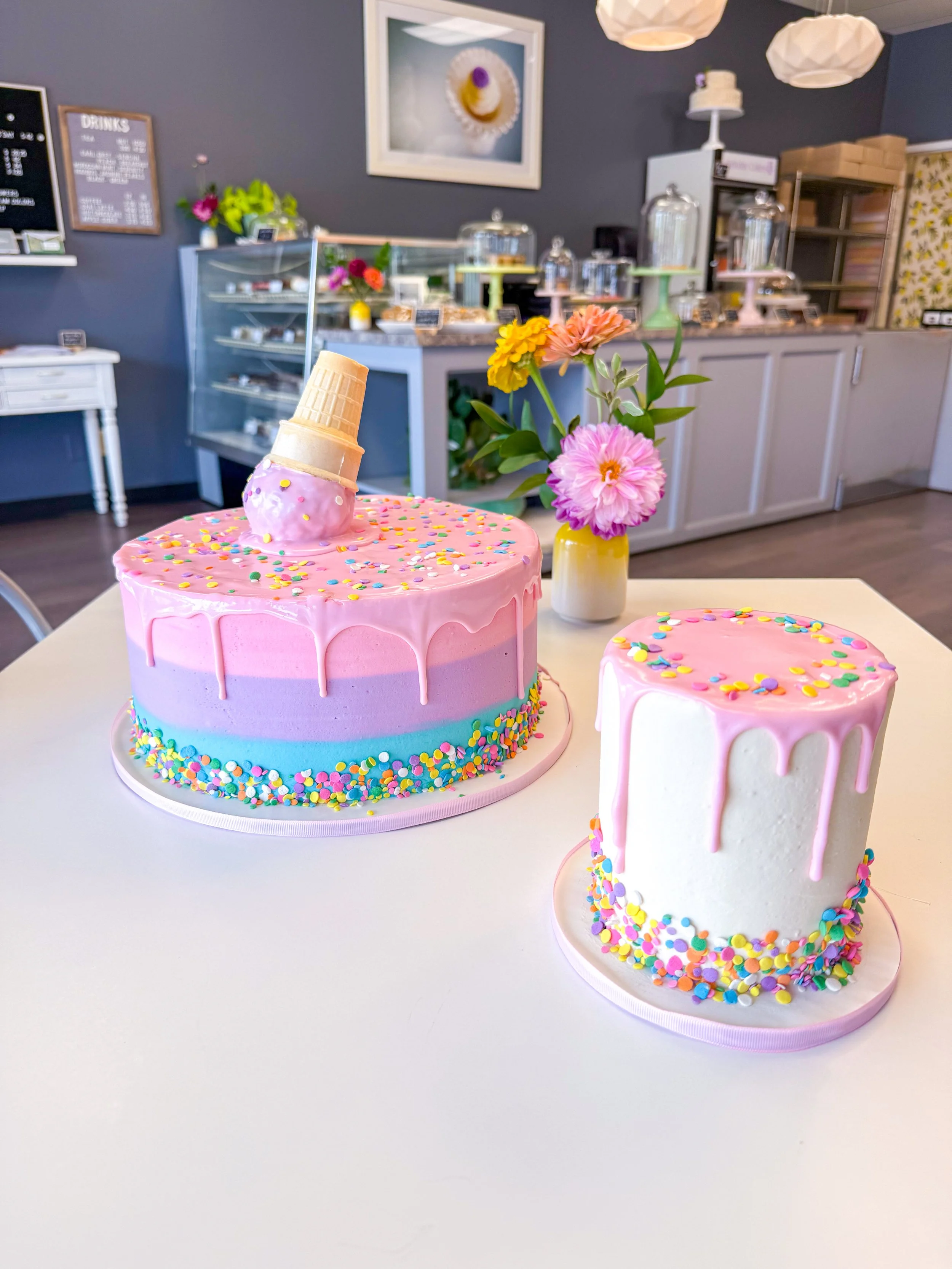 Our cakes are perfect for your celebrations or just because! We offer pre-designed cake options -or- you can design the cake yourself with a personalized cake! We have four different size options (4” serves 4, 6” serves 8, 8” serves 16 and 10” serves 26). Ordering timelines can be found below.